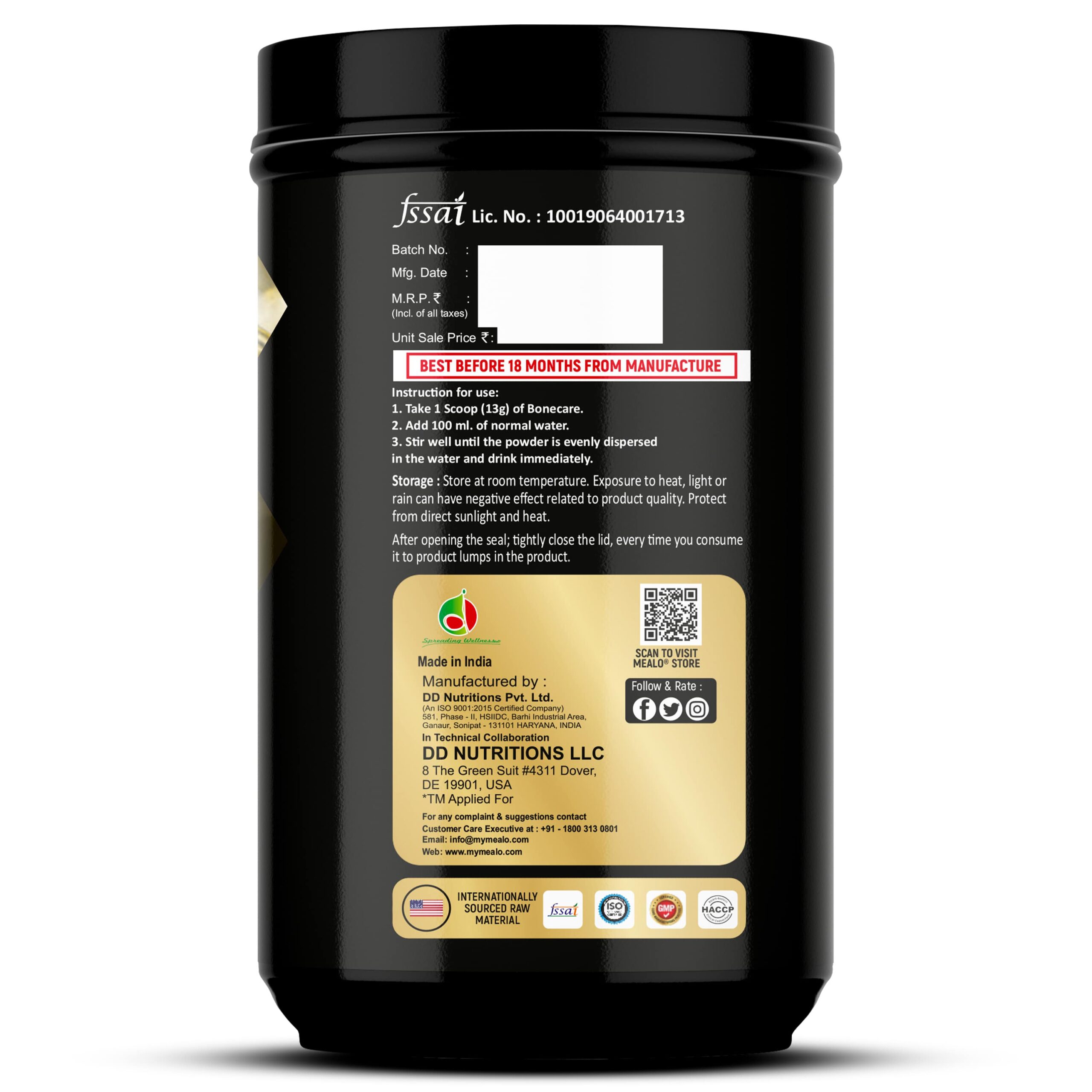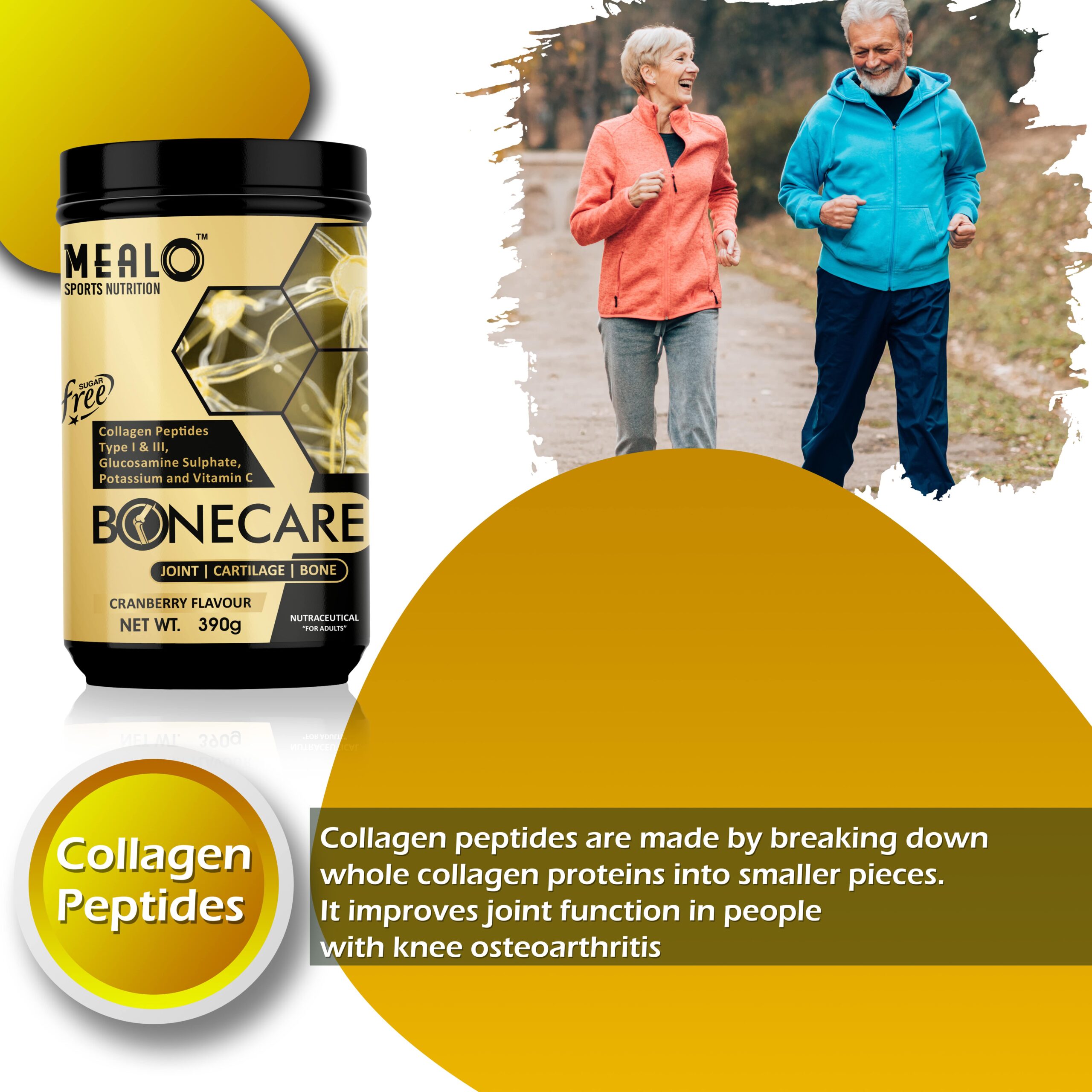Quickly Absorbed:- In order to make the collagen more easily digestible, MealO Bone care is made of Hydrolysed Collagen with Glucosamine and Vitamin C.