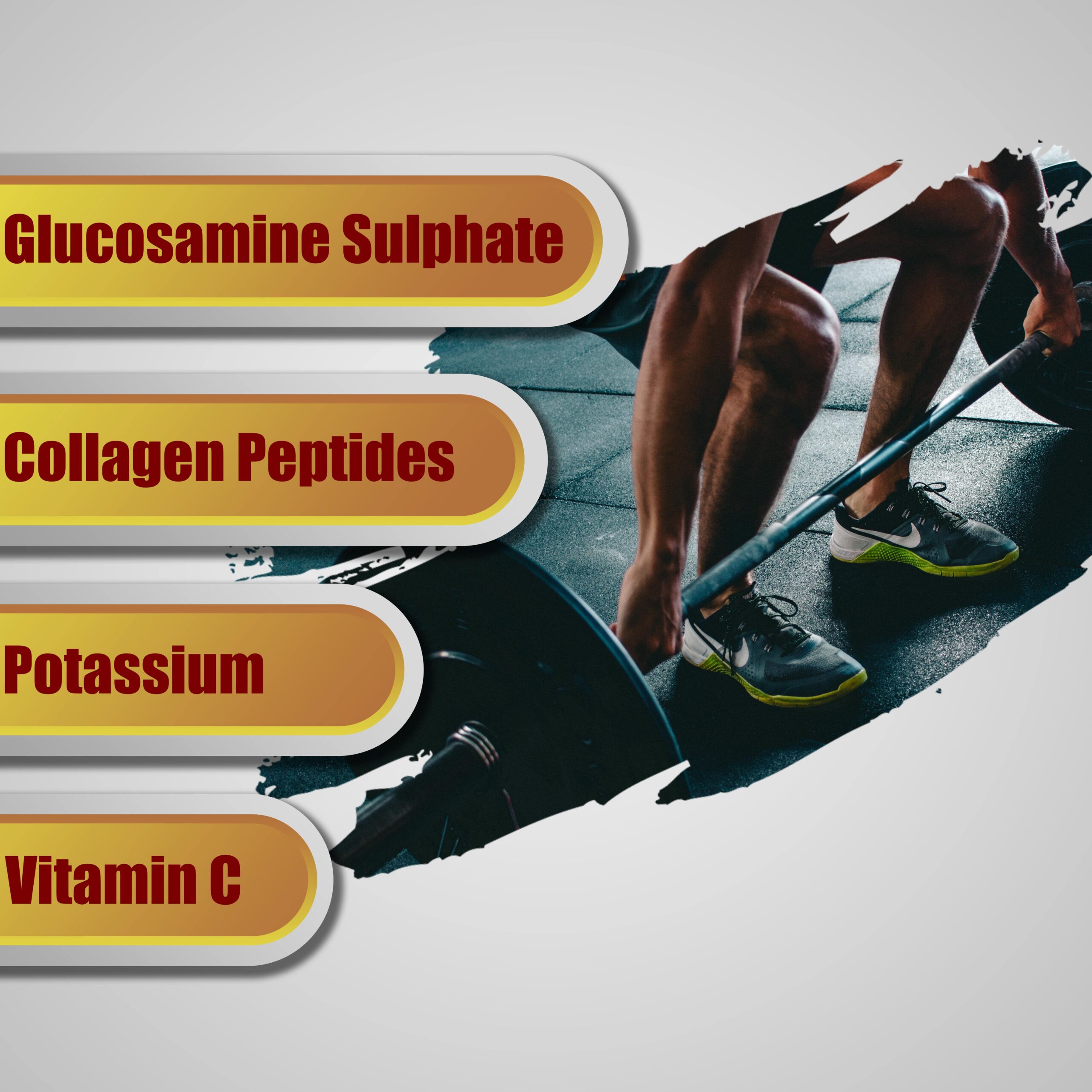 Our product contains type 1 and 3 collagen and blend of glucosamine sulphate pottasium chloride and Vitamin C which will help yu ease joint pain and other problem related to bone and joints.