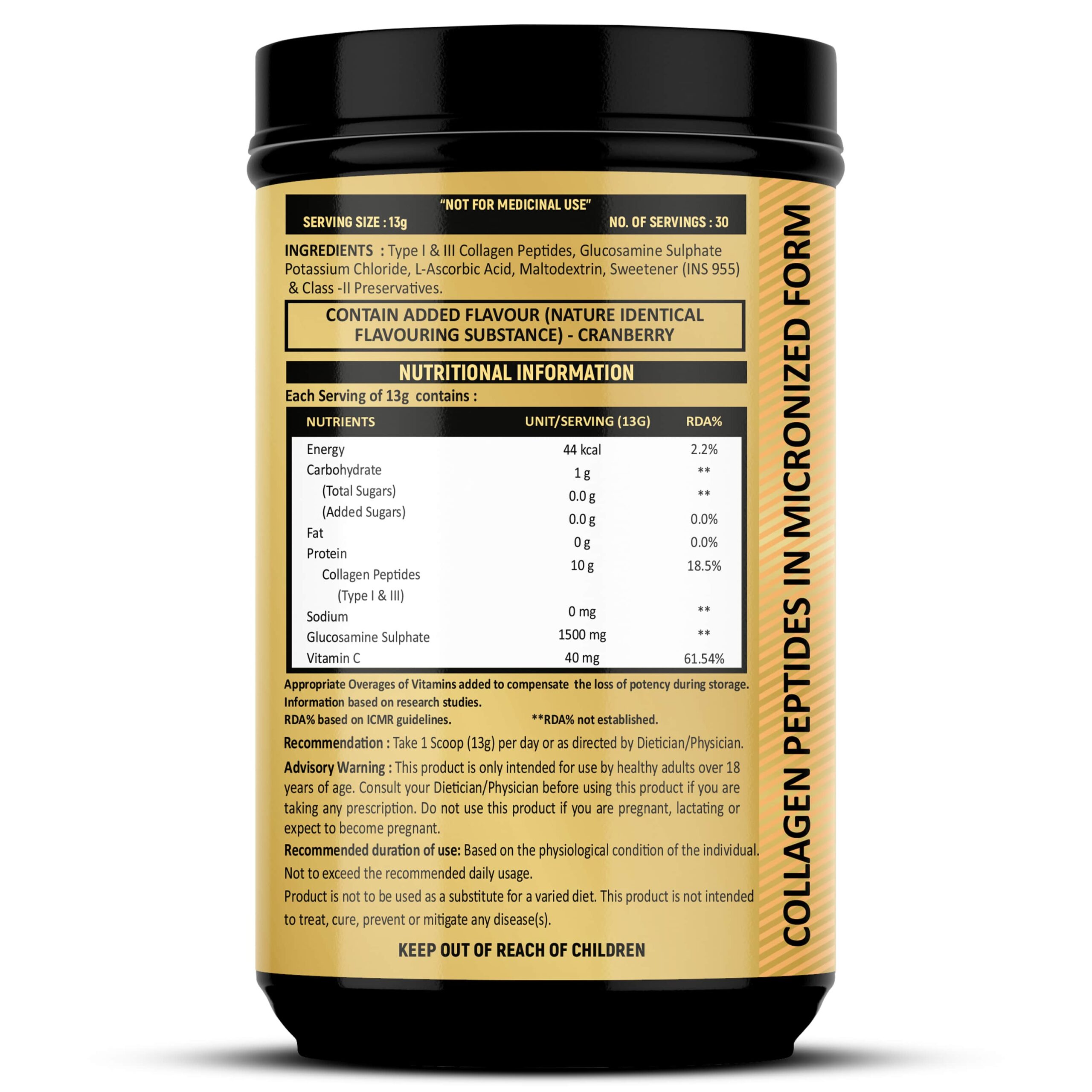 10 G Collagen peptide is present in 13g sachet.