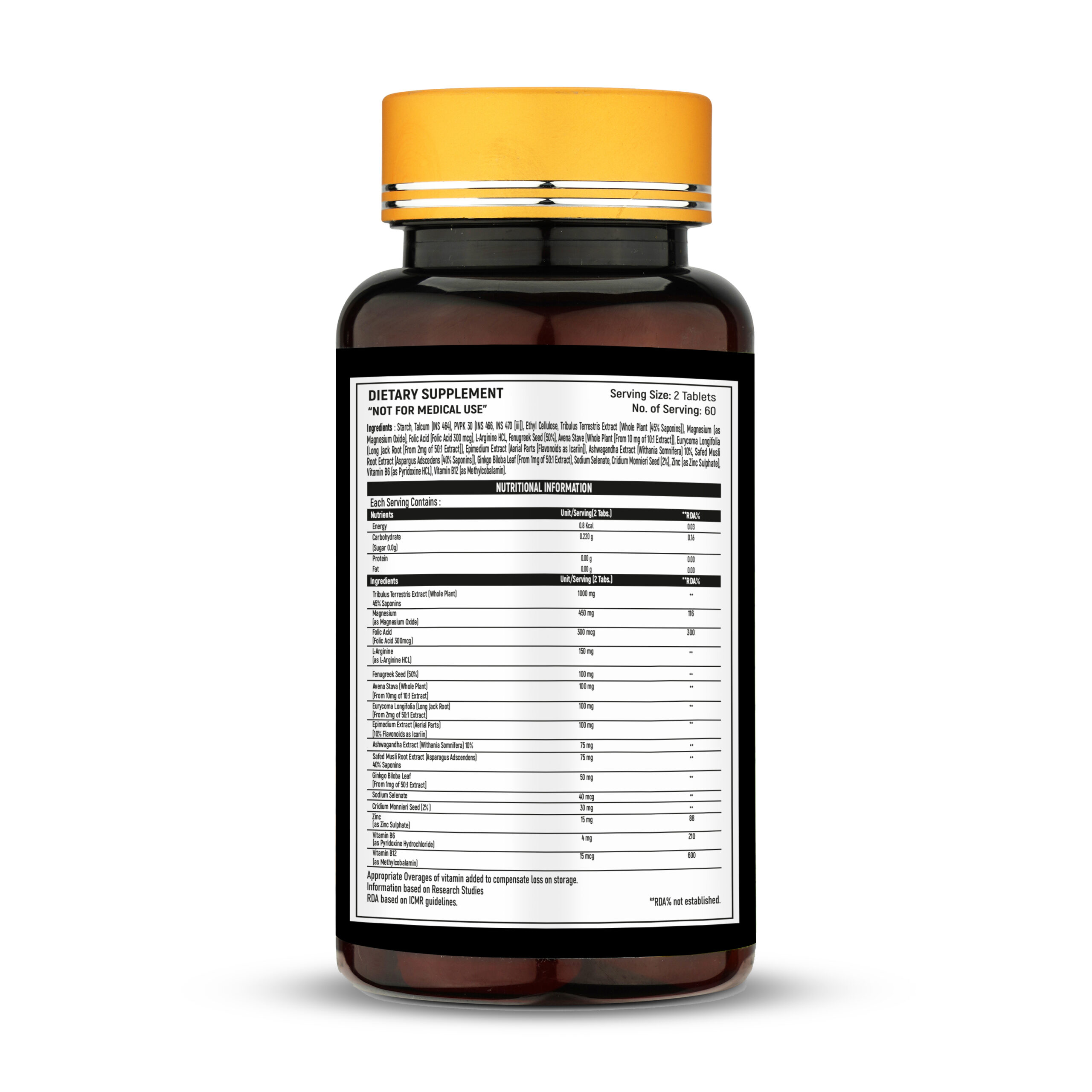 Potent Formula:- 1000mg Tribulus Terrestris added for non-stop stamina and enhance exercise performance.
